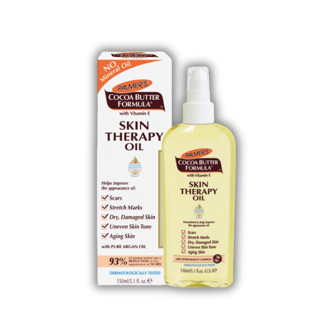 שמן למניעת והפחתת סימני מתיחה של פאלמרס, המבוסס על חמאת קקאו, הוא טיפול מתקדם ורב־תכליתי להזנה עמוקה של עור הגוף והפנים.
